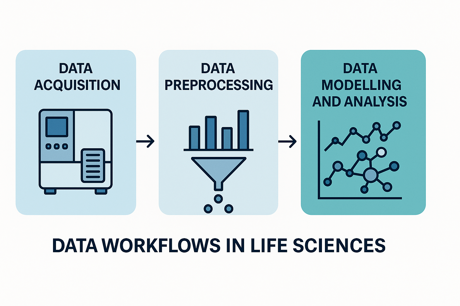 Biology now relies on big-data, high-throughput workflows to process and interpret signals from instruments like DNA sequencers and mass spectrometers. These workflows convert raw data into meaningful biological insights, helping identify disease drivers, drug targets, and biomarkers.